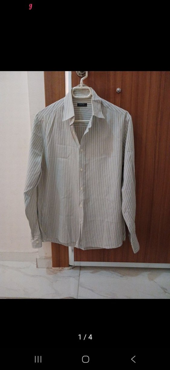 Bu erkek gömlek, regular fit kesime, uzun kollara ve yakalı tasarıma sahiptir. Hafif ve nefes alabilen keten kumaştan yapılmıştır, düğmeli önde ve normal boydadır. Bej ve gri tonlarında ince çizgili deseni vardır.