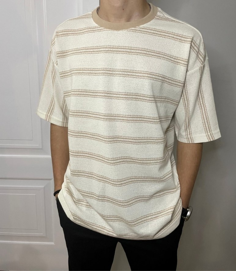 Bej çizgili, kısa kollu ve bisiklet yakalı erkek T-shirt. Yumuşak sentetik kumaştan üretilmiş, rahat ve şık bir görünüm sunar. Günlük kullanım için uygundur. (Marka temsilidir) s/xxl beden aralığı mevcut ( lütfen almadan önce beden sorgulaması yapınız)