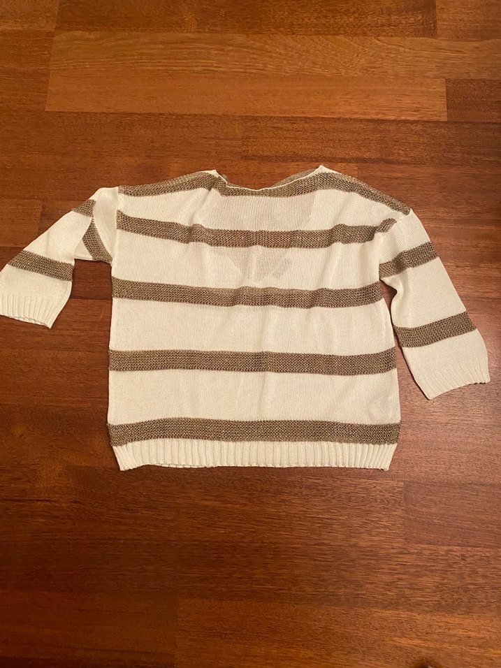 Bej renkli, uzun kollu ve kayık yaka triko kazak. Rahat kesimi ve desen içermeyen tasarımıyla günlük kullanıma uygundur.