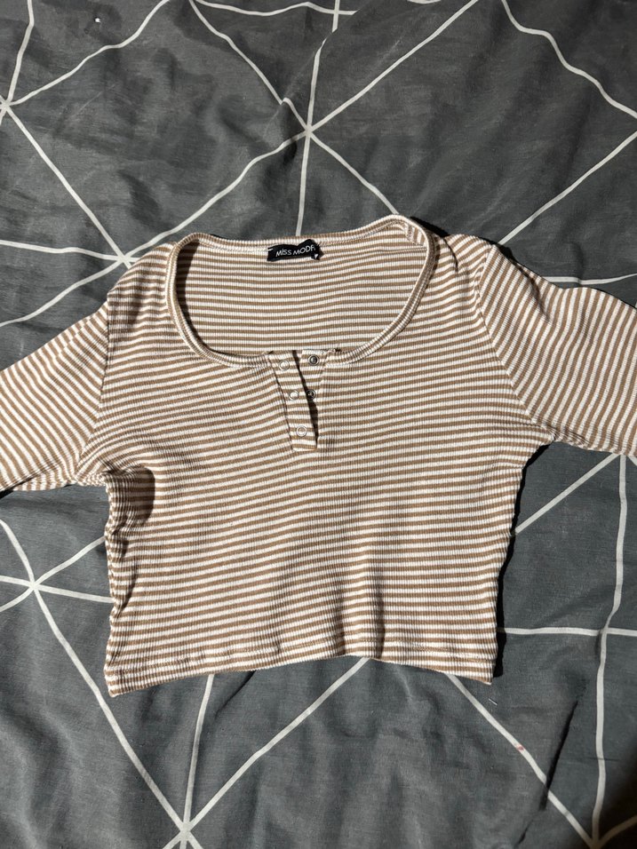 Bej Çizgili Kadın Uzun Kollu bluz