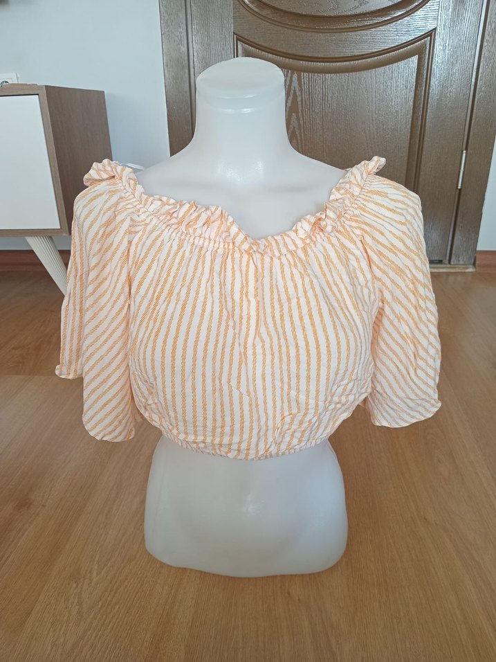 Bej Çizgili Kısa Kollu büstiyer