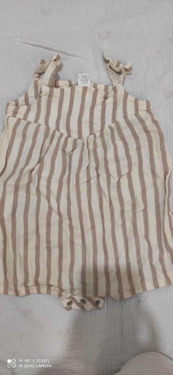 Bej Çizgili Kız Bebek Tulum6-9ay