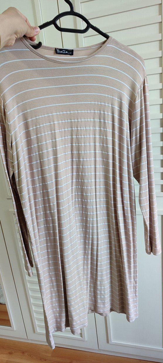 Bej Çizgili Salaş Uzun Tunik