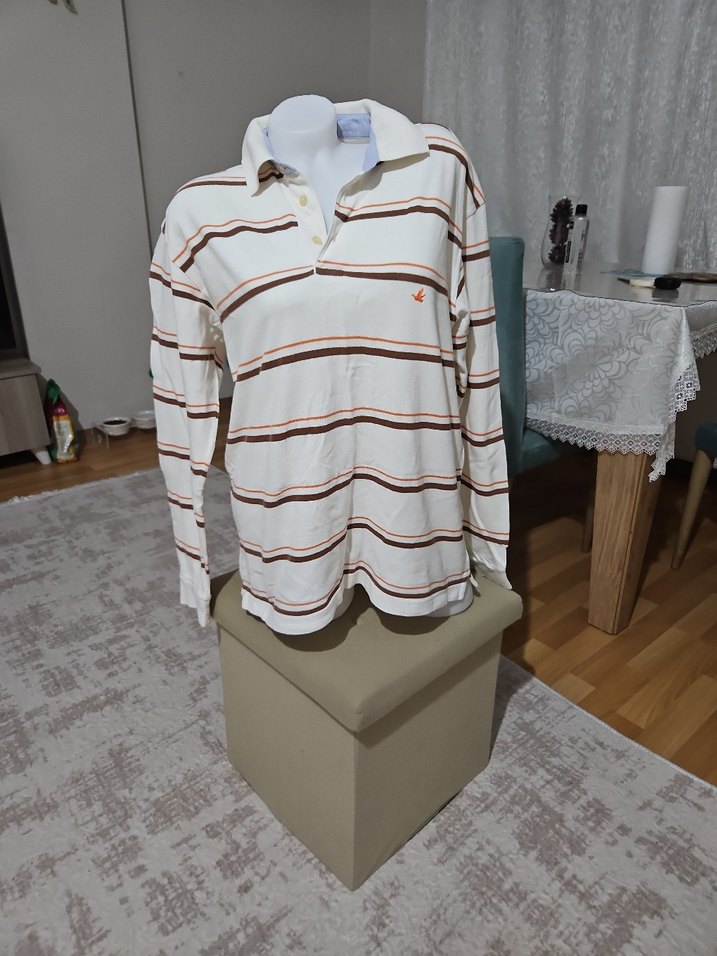 Pamuk kumaştan, uzun kollu, yakalı ve düğmeli bej çizgili Rahat kesimli, günlük ve sokak stili için uygundur. Marka temsili