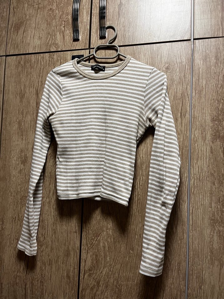 Bej Çizgili Uzun Kollu Kadın crop