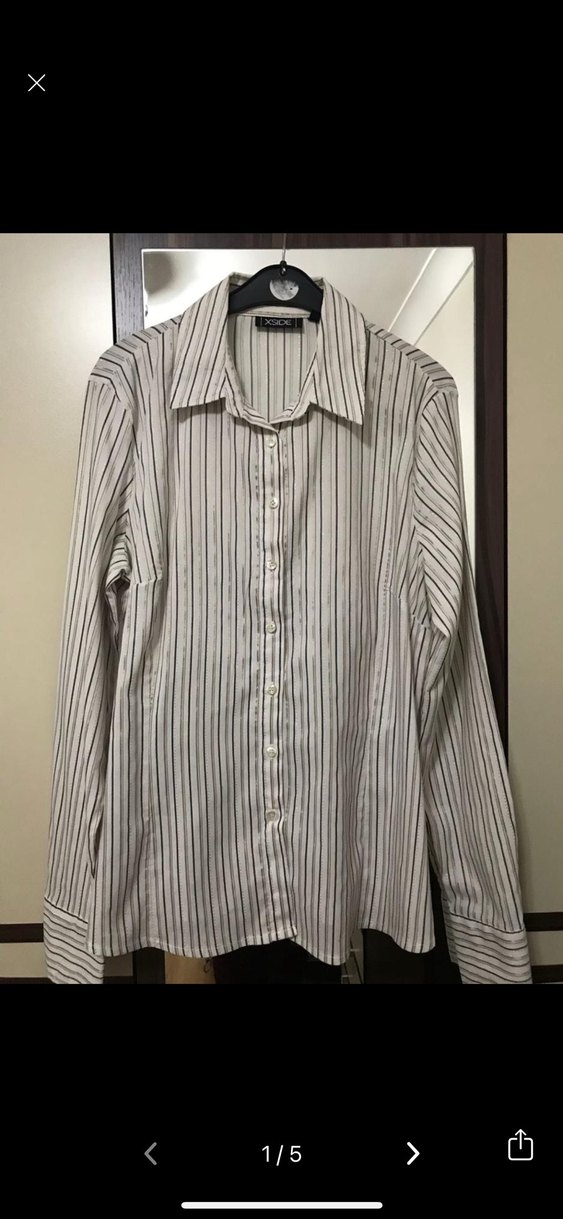 Bej çizgili, uzun kollu, düğmeli ve yakalı pamuk gömlek. Regular fit, ofis ve günlük sokak stili için uygundur. Kusuru yoktur az giyilmiştir L ve XL uygundur