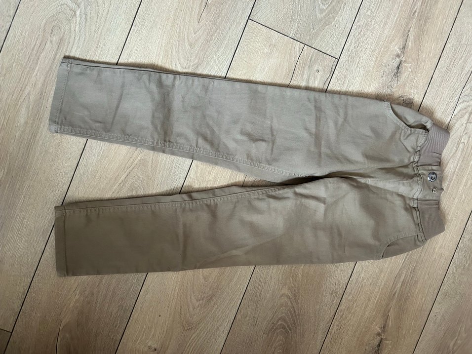 Bej keten erkek çocuk pantolon bel kısmında demir düşük görünmüyor