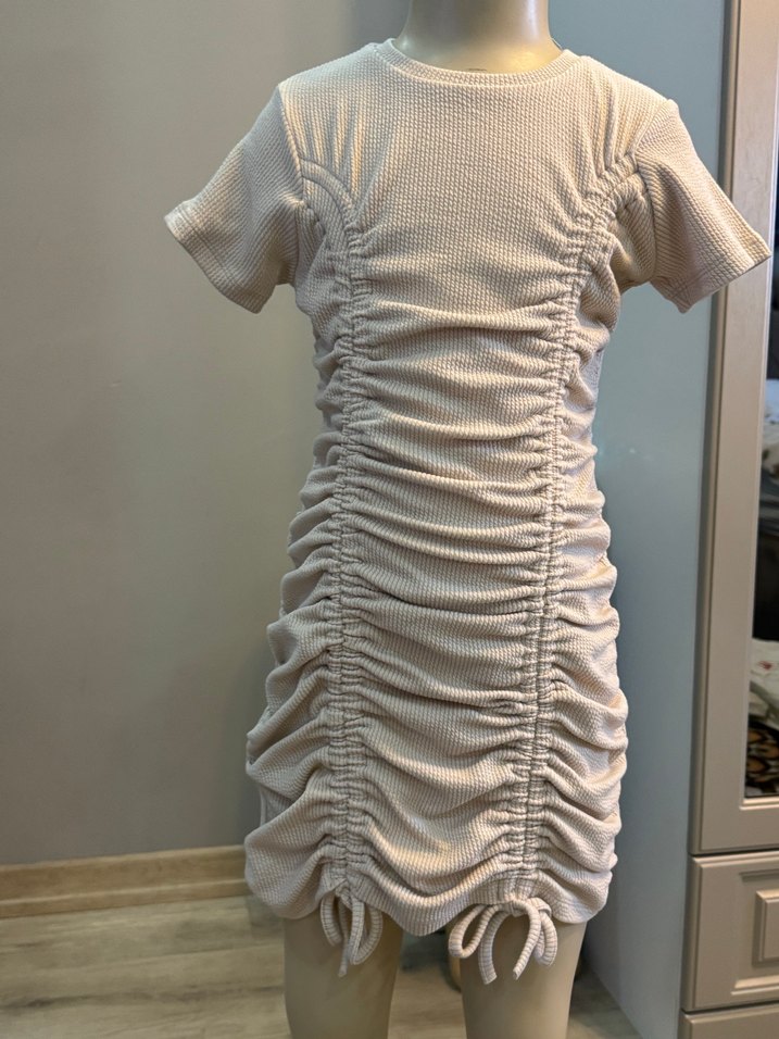 Bej çocuk Keten Pilili Kısa Kollu Elbise