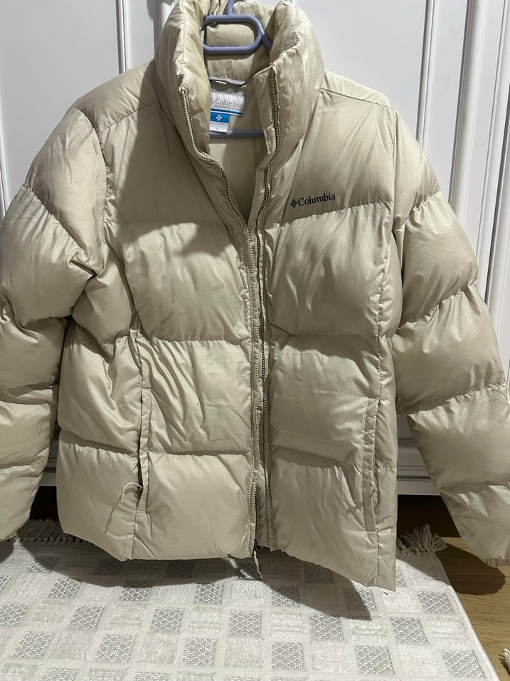 Bej renkte, Columbia markalı kadın kışlık mont. Yurt dışından hediye geldi 2 kere giydim büyük geldiği için satıyorum baya sıcak tutuyor