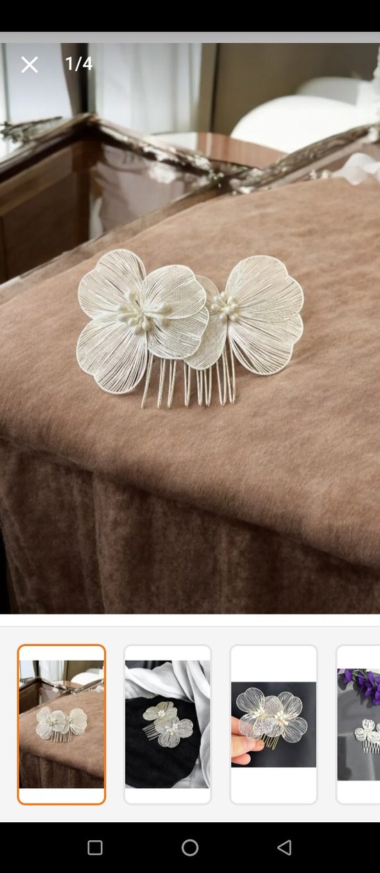 Bej renkli, dantel detaylı, örgü kumaştan yapılmış iki çiçekli bohem tarzda Gelin Saç Tokası
