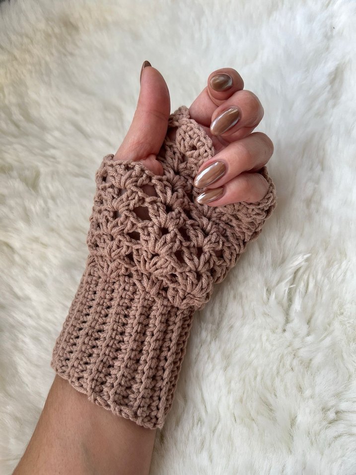 Bej Dantel Detaylı Bohem Örgü Eldiven