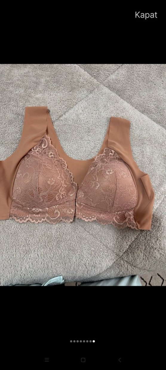 Bej renkte, dantel detaylı bohem tarzda sütyen. Yumuşak ve rahat kumaşla konfor sağlar, normal uzunlukta ve pastel tonlardadır.