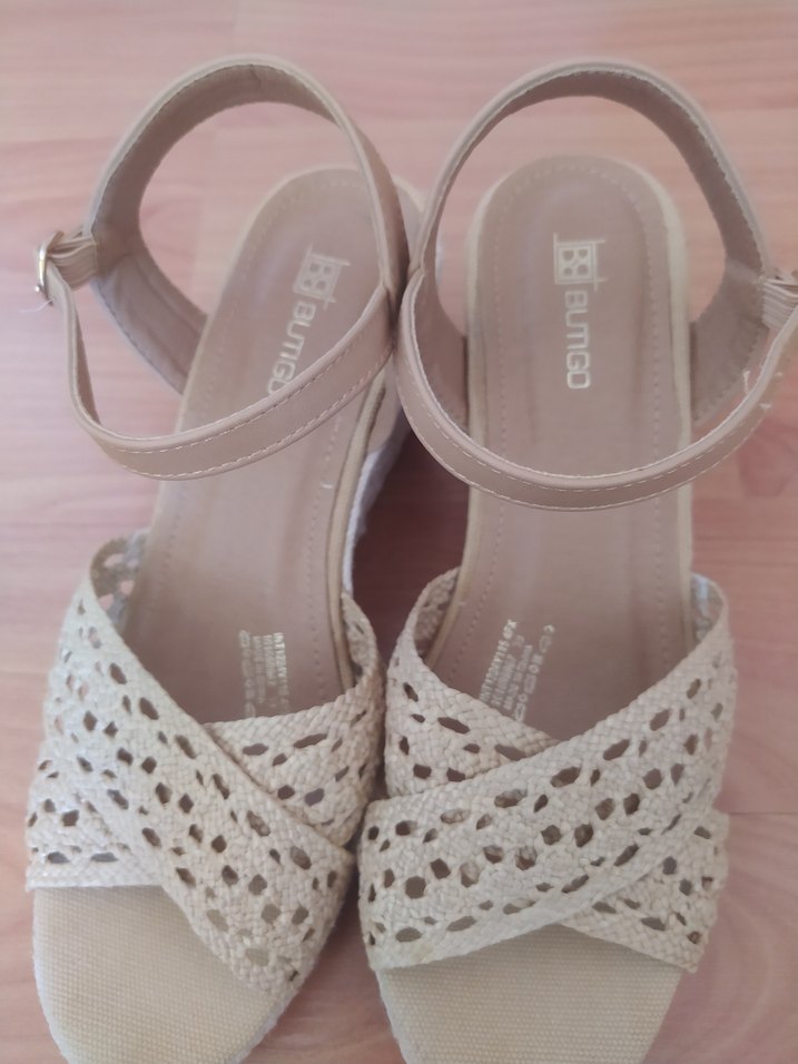 Bej renkte, dantel ve nakış detaylı dolgu topuklu kadın sandalet. Kauçuk tabanlı, günlük kullanıma uygun şık ve sade tasarım.ben 38 giyiyorum ama 39 da tam oldu kalıpla alakalı sanırım