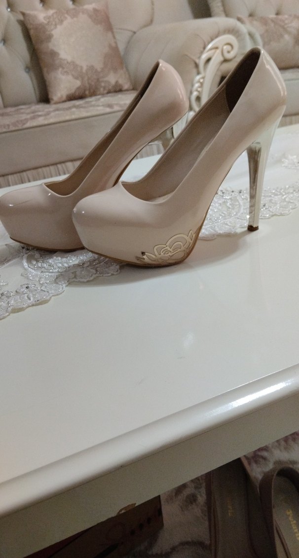 Dantel işlemeli bej kadın ince topuklu ayakkabılar, modern klasik tasarım ve düğün için uygun. Pürüzsüz, dayanıklı kauçuk malzemeden üretilmiştir.