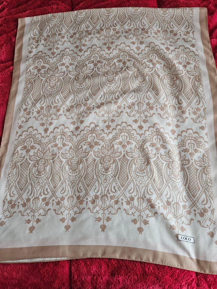 Coco scarf Kadınlar için bej ve gri dantel desenli, . Bohem ve retro tarzlara uygun vintage tasarım. Yumuşak ve pürüzsüz kumaş sunar. iade kabul edilmeyecektir.marka temsilidir