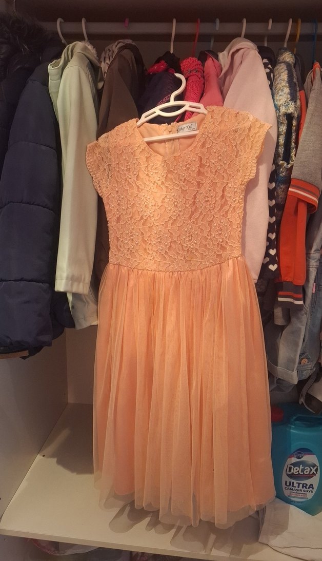 Bej Dantel Detaylı Kız Elbisesi