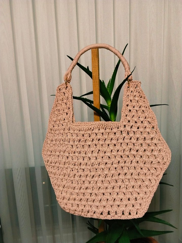 pudra renkte, dantel detaylı örgü kadın çanta. Minimalist ve bohem tarzda, günlük kullanıma uygun, yumuşak dokulu ve pastel tonlarda bir model. yeni örülmüştür. boyut en tabandan 27 orta genişlik 41 iç derinlik 27 cm. #kagit ip #kagitip