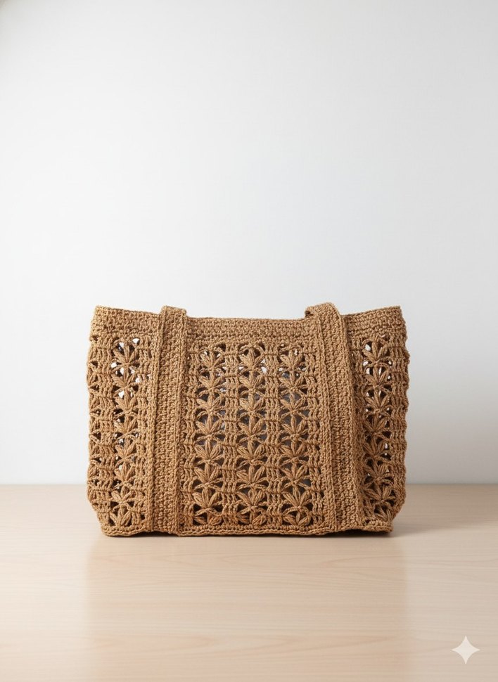Bej renkli, dantel detaylı örgü kadın çantası. Minimalist bohem tarzıyla günlük kullanıma uygun, desensiz ve açık renkli. yaza damgasını vuracak harika bir plaj çantası. %100 el örgüsü