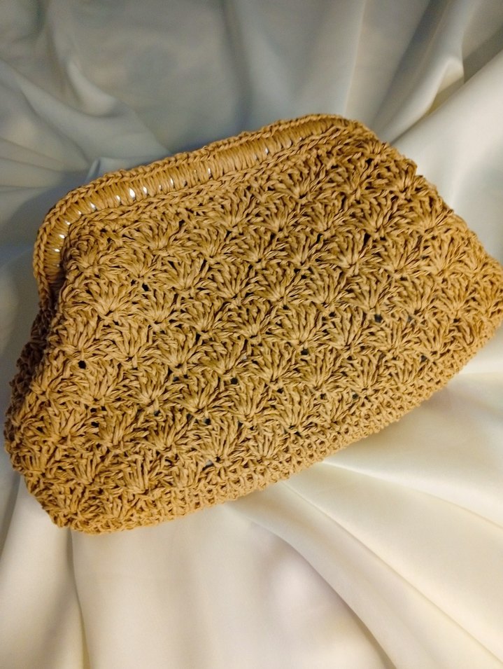 Dantel detaylı, parlak dokulu bej örgü kadın portföy çanta, vintage bohem tarzda, günlük kullanıma uygun. 16 cm burs, 18 cm yükseklik, 32 cm en. Sipariş üzerine yapılır. Hasır rengidir, 1-3 iş günü içinde teslim edilir.