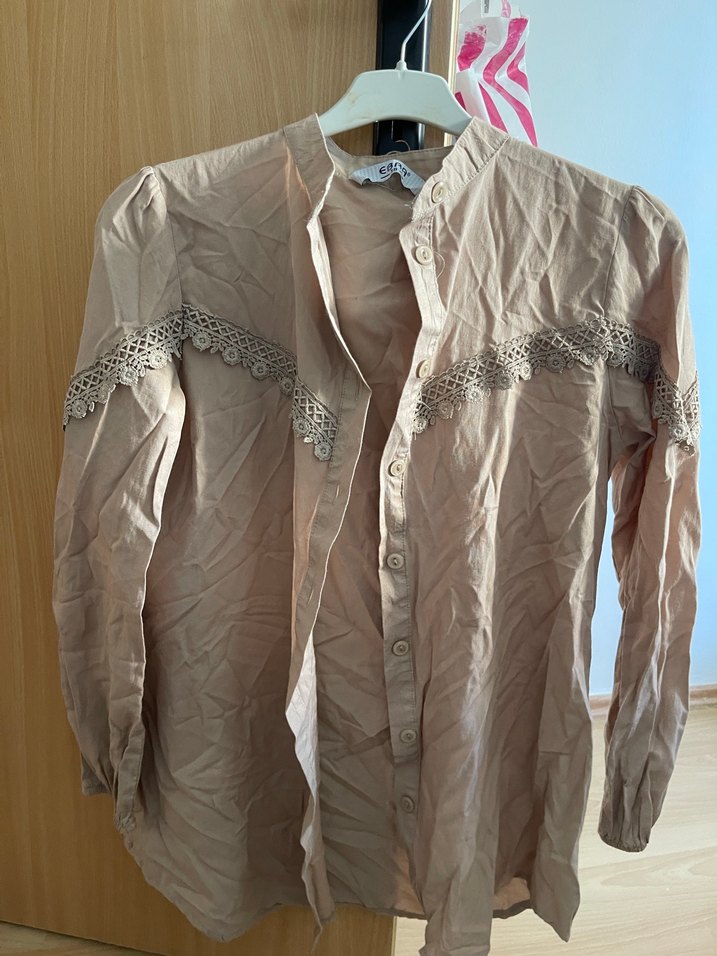 Bej renkli, uzun kollu, düğmeli keten gömlek, göğüs kısmında dantel detayı bulunur. Salaş kesim ve yakalı, bohem tarzda bir tasarım. Ütülü bir şekilde gönderilecektir