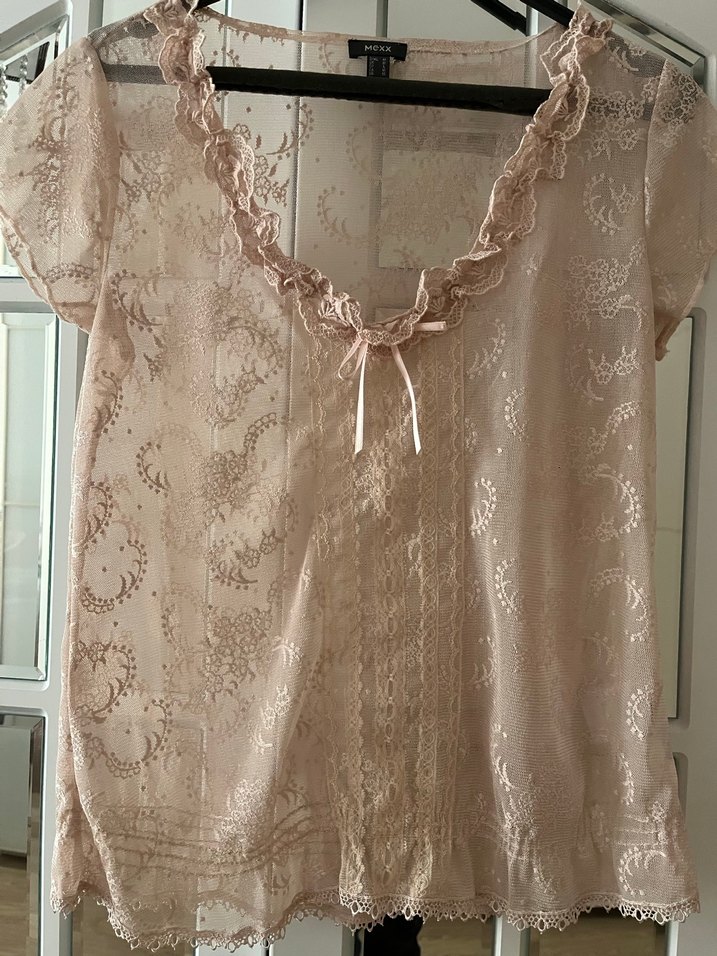 Bej renkli, nakış desenli, dantel süslemeli V yakalı, kısa kollu, midi uzunlukta, bol kesim ve ipeksi dokulu kadın bluz. Ofis için uygun, bohem ve klasik şıklık yansıtıyor.