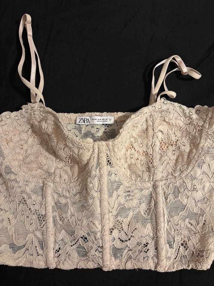 Bu dar kesim bej büstiyer, ince askılar ve zarif dantel işlemeleriyle bohem ve Paris tarzını yansıtıyor, günlük kullanım için uygundur.