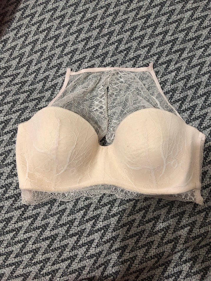 Bej renkte, dantelli ve bohem tarzda straplez sütyen. Orta uzunlukta ve desensiz tasarımıyla hafif bir görünüm sunar.