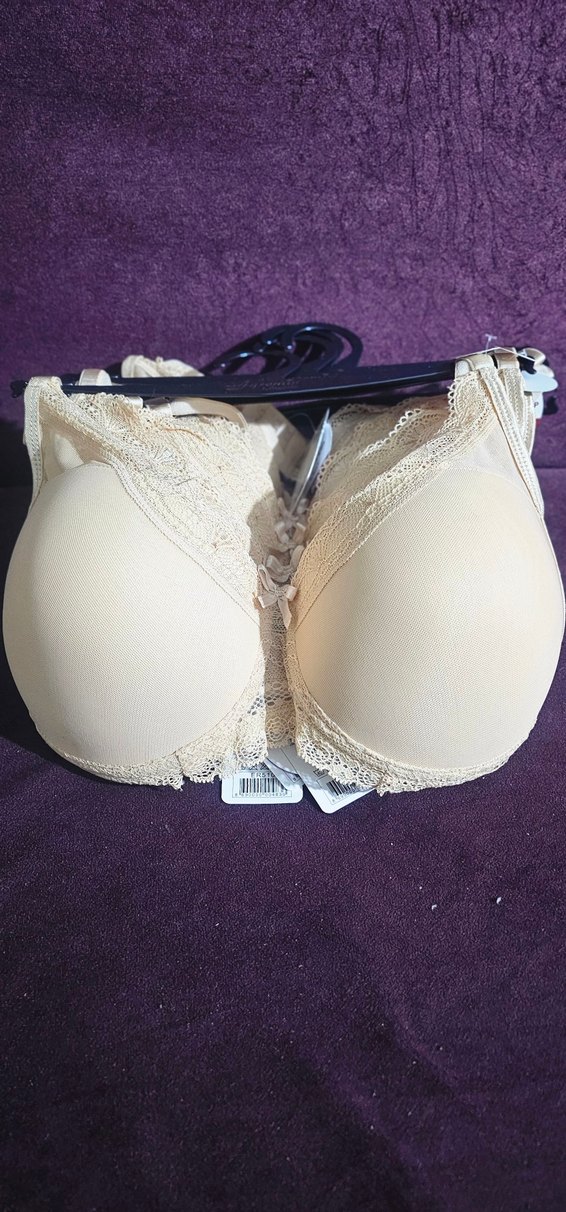 Bej renkte, hafif ve yumuşak kumaştan yapılmış, ince dantel detaylı mini sütyen. Rahat ve bohem tarzda, desensiz tasarım. destekli