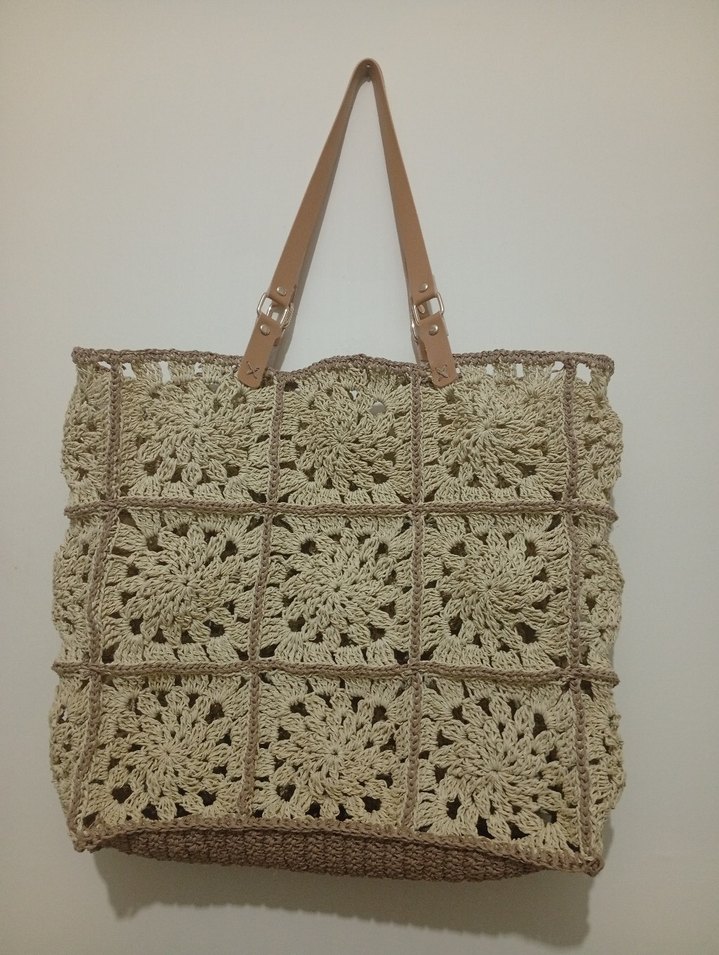 Bej renkli, dantelli işlemeli kağıt ipten yapılmış , deri saplı bohem ve retro tarzda kadın çantasıdır. Günlük kullanıma uygundur.