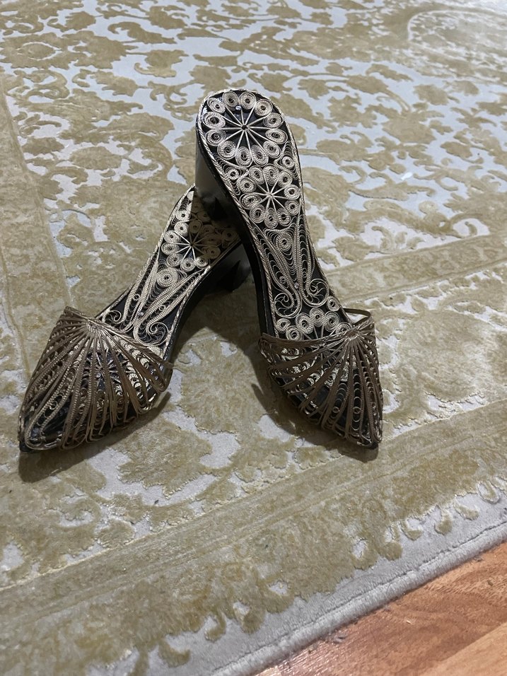 Dekoratif kadın terliği üstü işlenmiş gümüş kaplıdır sadece parlatılması lazım