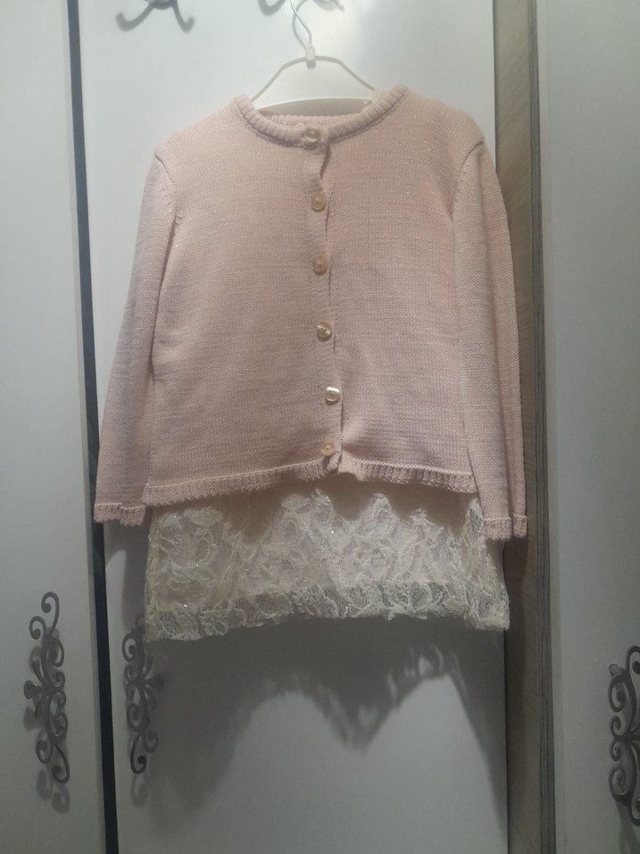 Bej Dantelli Triko Kız Hırka ve simli elbise