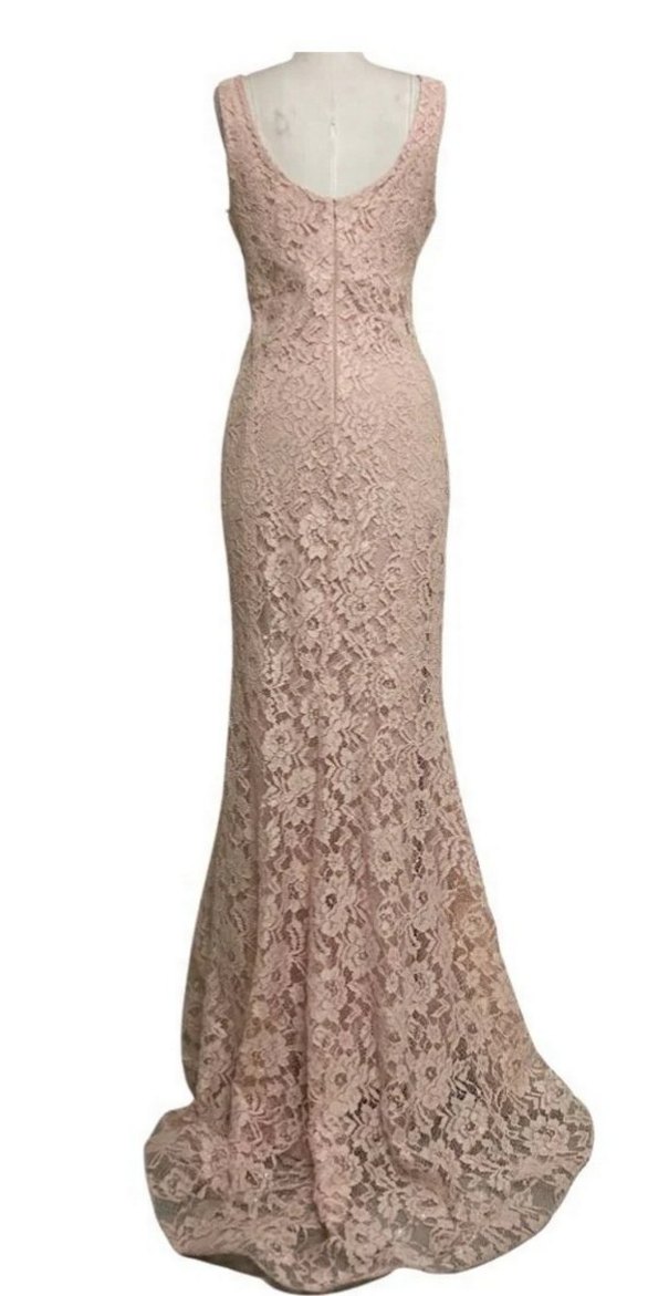 Kolsuz, v yaka ve bej renkte dantel detaylı, uzun ve vücuda oturan abiye elbisedir. Düğünler için modern klasik tarzda tasarlanmıştır. 1 kere 3 saat giyildi kuru temizleme uygulanmış temiz yırtık sökük yıpranma yok etiket bilgilerinden de bellidir el işciliği uygulanmış süslemeleri süsler cıkarılır önü acık konuma gelebilir