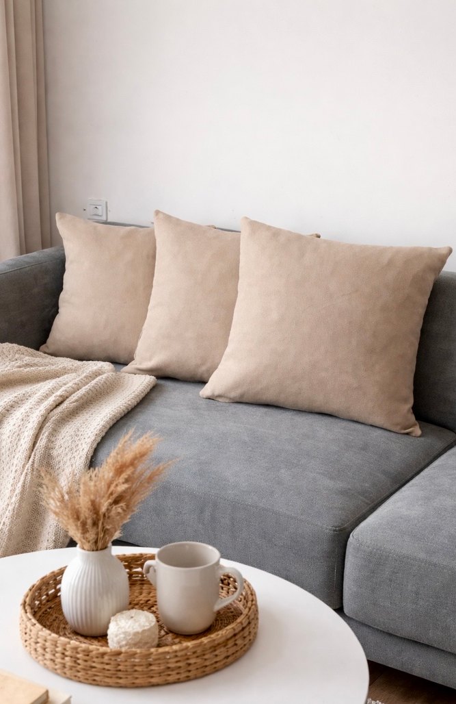 Yumuşak dokulu, bej renkli üç adet dekoratif yastık seti, oturma alanınıza konfor katar,3lü fiyat verilmiştir ÖLÇÜ 41/41