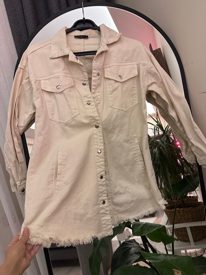Bej renkli, denim kumaş gömlek ceket. Alt kısmı püsküllü kesimdir, önü çıtçıt düğmelidir. Göğüs cepleri mevcuttur. Mevsimlik kullanıma uygundur (bahar/sonbahar). Günlük kombinlerde çok şık durur. Hediye gelmiştir çok az kullanılmıştır