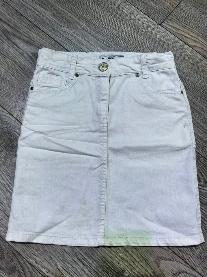 Bej denim kumaştan,dar kesimli mini etek. Gösterdiğim lekeler dışında defosu yoktur, pek görünmüyorlar. Ürün 11-12 yaş ama xs giyenler giyebilir güzel duruyor. Artık tarzıma uymadığı için satıyorum