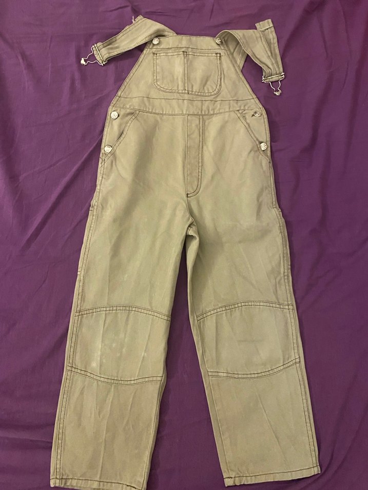 Bej renkli, midi boy, bol kesim, denim salopet. Askılı ve çentikli yaka detaylı, günlük kullanım için uygundur. Kalın kumaş, üstten kemer ayarlı, bol cepli boru paça salopet. Paristen gelmiştir. Diz kısmında görsellerde de belirttiğim belli belirsiz lekeler var. Kumaşı hafif süet gibi durdugu için pek belli olmuyor, giyilmesine asla engel değil, bunun dışında kusursuzdur. #çocuksalopet