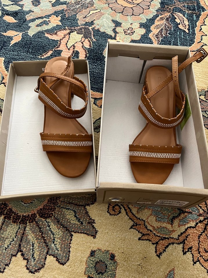 Bej deri hafif topuklu ve kemerli kayışlara sahip kadın sandaletleri, günlük kullanım için bohem tarzıyla uygun.