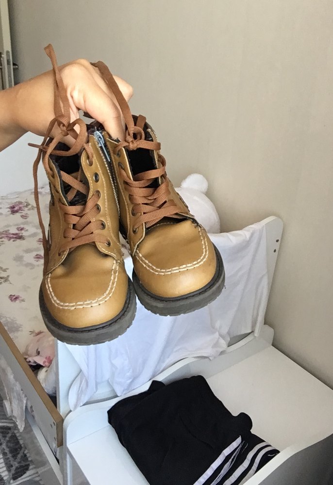Bej deri çocuk bot , bağcıklı tasarımıyla günlük sokak stiline uygun, parlak ve minimal bir görünüme sahiptir. Çok az kullanıldı tertemiz hiçbir sorunu yok