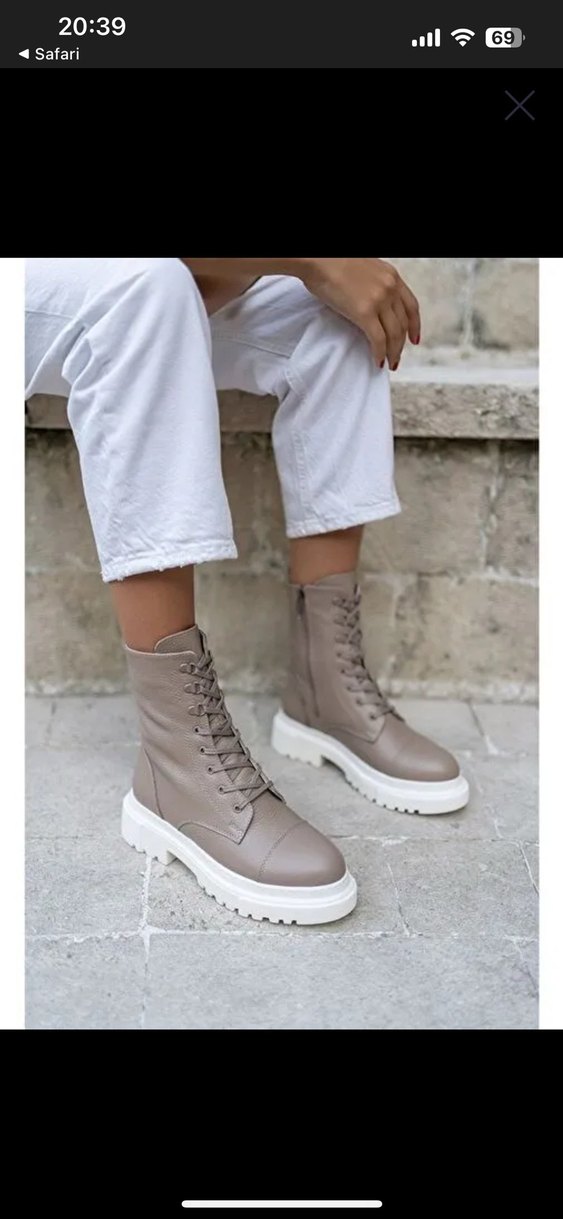 Bej deri, bağcıklı ve yüksek topuklu kadın botları, günlük sokak modasına uygun rahat ve şık.