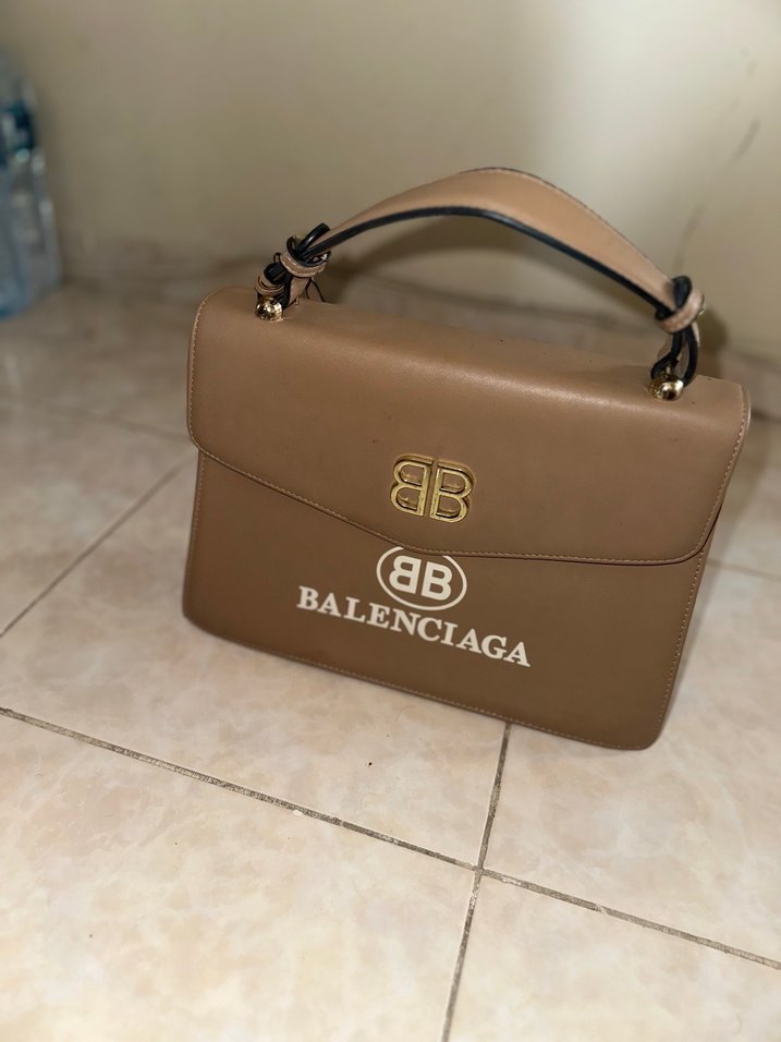 Bej deri Balenciaga kadın çanta, tokalı kapağı ve baskılı logosuyla klasik şıklığı sokak tarzıyla birleştirir, günlük kullanım için uygundur. İç kısmında küçük bir deri izi var kullanımı engellemez dıştan görünmez.
