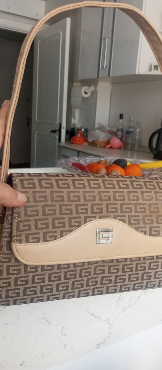 Bej deri baskılı, tokalı detaylı kadın çantası, klasik şıklık ve günlük sokak stili için uygundur.