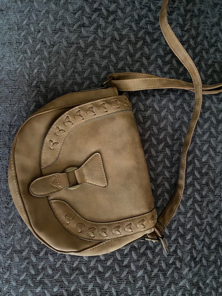 Bej deri, tokalı tasarımıyla bohem tarzda kadın çantası. Günlük kullanıma uygun, desensiz ve uzun askılıdır.