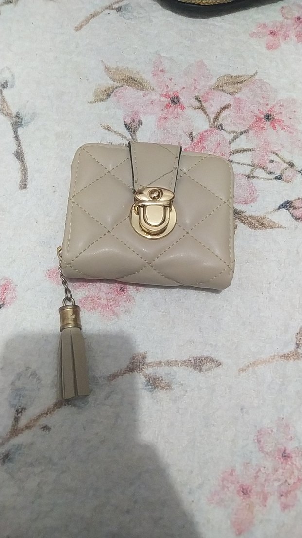 Bej renkli deri kadın cüzdanı, püskül detaylı ve yılan derisi desenli. Günlük kullanıma uygun, bohem tarzda ve altın renkli toka ile.
