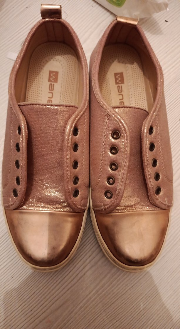 Bej deri dolgu topuklu, düğmeli ve parlak yüzeyli kadın spor ayakkabısı, minimalist ve normcore tarzıyla günlük kullanıma uygundur. Not bagcık alarak kullanılır