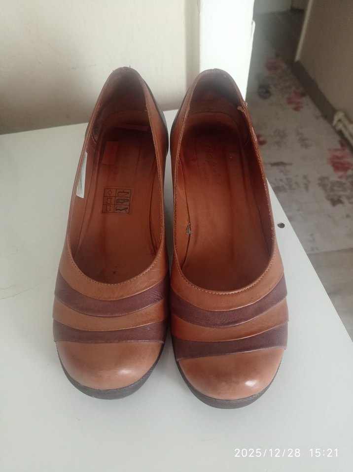 Bej deri kadın klasik ayakkabılar, dolgu topuklu ve tokalı detaylıdır. Minimalist tarzda, parlak yüzeye sahip, günlük kullanıma uygundur. 2025/12/28
