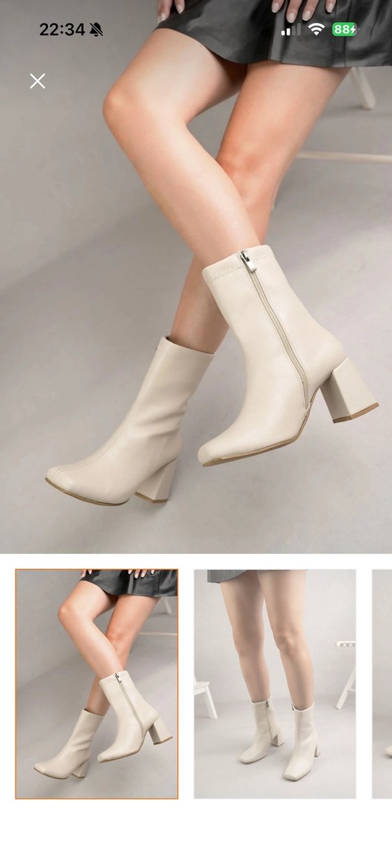 Bej renkte, deri malzemeden yapılmış, blok topuklu ve fermuarlı kadın botu. Minimalist ve çağdaş tarzıyla günlük kullanıma uygundur. Pazarlık yapılabilir