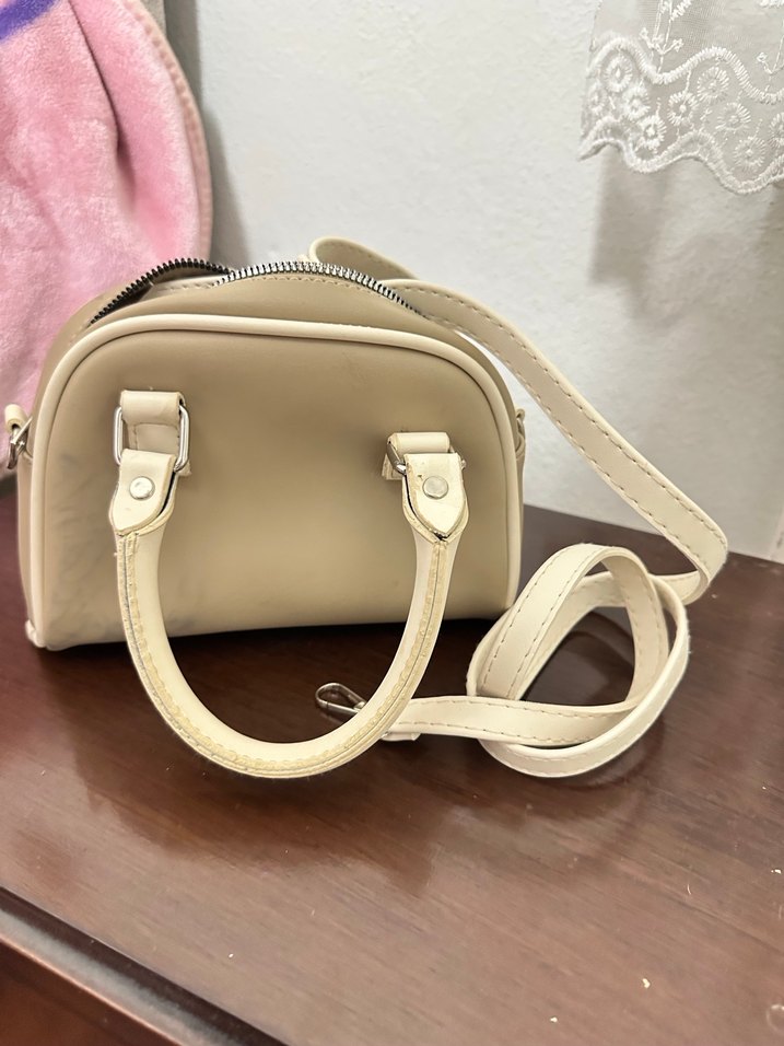 Bej renkli deri çanta, fermuarlı kapama ve sade desensiz tasarıma sahiptir. Pastel tonu ve sokak stiliyle günlük kullanıma uygundur.