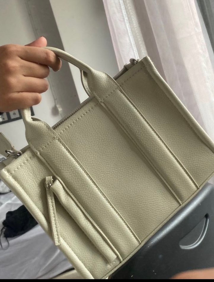 Bej deri kadın çanta, fermuarlı kapama ve sade desensiz tasarıma sahiptir. Günlük ve sokak stiline uygundur. Askısıda mevcuttu ister elde ister omuzda kullanılabilir