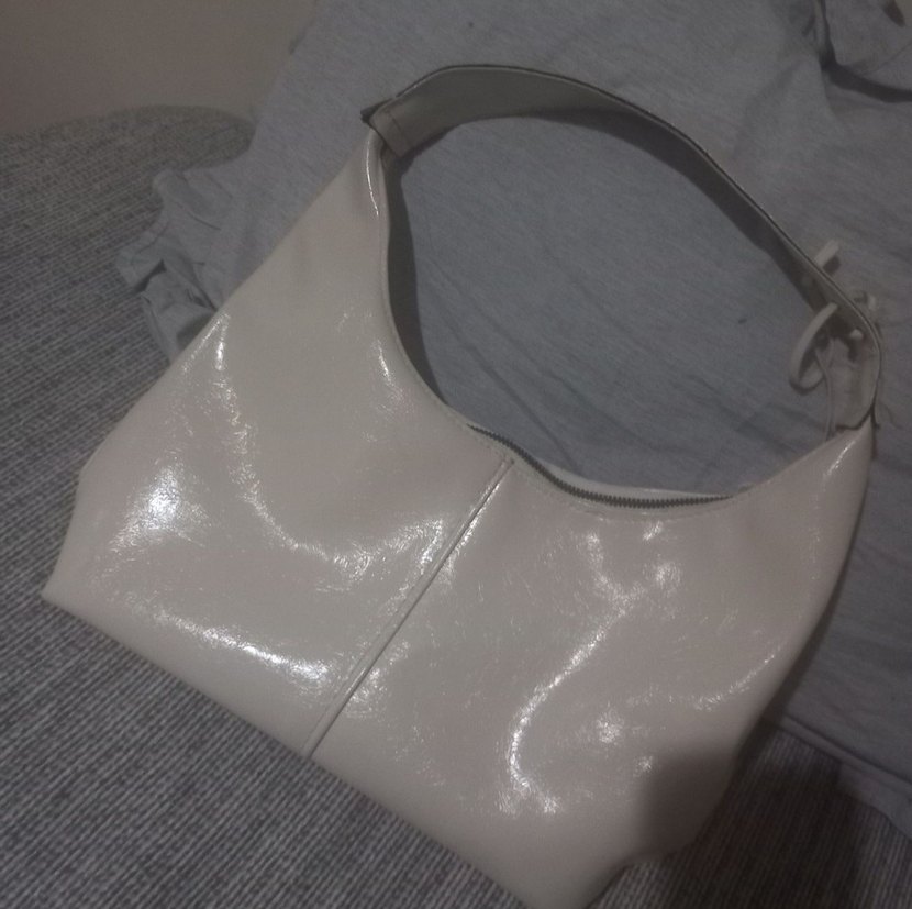 Bej renkli deri çanta, fermuarlı kapama ve minimalist, çağdaş tasarıma sahiptir. Günlük kullanım için uygundur ve modayı takip edenler için idealdir.