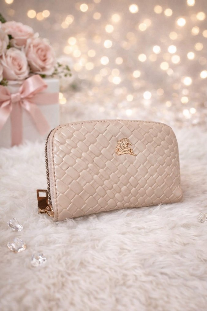 Bej Deri Fermuarlı Kadın Cüzdanı
